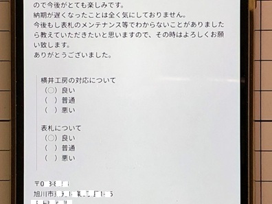 今日の工房を覗いてみる 最終更新:2025.12.31 窓外の景色 2025.12.31 AM7:35撮影 以前の”窓外の景色”は、画像をクリックすると ご覧頂けます。 ![]() ![]() 三重県鈴鹿市の天気予報を見てみる 小さな来客 "小さな来客"の記録は、画像をクリックすると ご覧頂けます。 ![]() お静かに。ZZZ・・・ 表札選びに迷ったら、お気軽にお電話ください。 本日の電話受付時間:8:00〜20:00 050−7301−5550 又は 090−3578−3583 営業時間内、メールでのお問い合わせ回答までのお時間は只今約3時間です。 メールでのお問い合わせはこちらをクリックして下さい。 お急ぎの場合は、お電話にてお願い致します。 心を込めた表札を、伊勢神宮を擁する三重県よりお届けします。 いただきましたご縁を大切に、 世界にひとつの格調高い、 手作りの表札をお届けいたします。 感謝とお詫び: